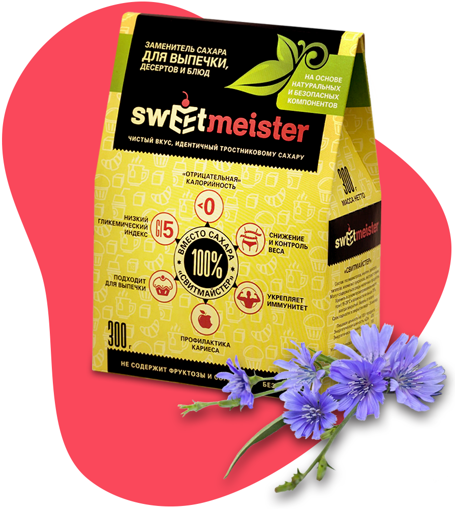 СВИТМАЙСТЕР – это вкусный и безопасный сахарозаменитель нового поколения. То, о чём мечтали, стало реальностью. Вы хотите иметь крепкое здоровье, красивую фигуру, чистую кожу, крепкие зубы и высокий иммунитет? Это понятное и хорошее желание. Раньше его реализация означала обязательное изменение системы питания и отказ от любимых лакомств. Теперь у Вас нет необходимости воздерживаться от сладкого. Благодаря СВИТМАЙСТЕР стало возможным полноценное приготовление бисквитов, печенья, зефира, мармелада, блинчиков и джемов, а также многого-многого другого. СВИТМАЙСТЕР сохраняет привычный и любимый вкус готовых изделий, наделяя их при этом полезными свойствами. СВИТМАЙСТЕР – это натуральный сахарозаменитель, обогащенный пребиотиками, имеющий низкий гликемический индекс и чистый вкус сахара – идеален для добавления в пп рецепты, для диетического и просто здорового питания. Этот заменитель сахара может использоваться в кулинарном искусстве не только как натуральный подсластитель с широким диапазоном возможностей, но и, что не менее важно, для восполнения недостатка полезных пребиотических волокон в повседневном рационе.